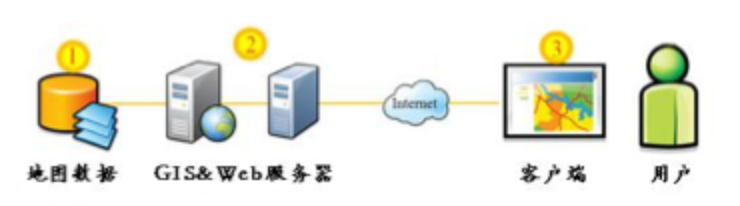 可以看到一个 gis 应用的产生,首先是 gis 数据的产生 -> 接着通过 gis 服务器发布了一系列的 restful 服务 -> 最后客户端进行调用。