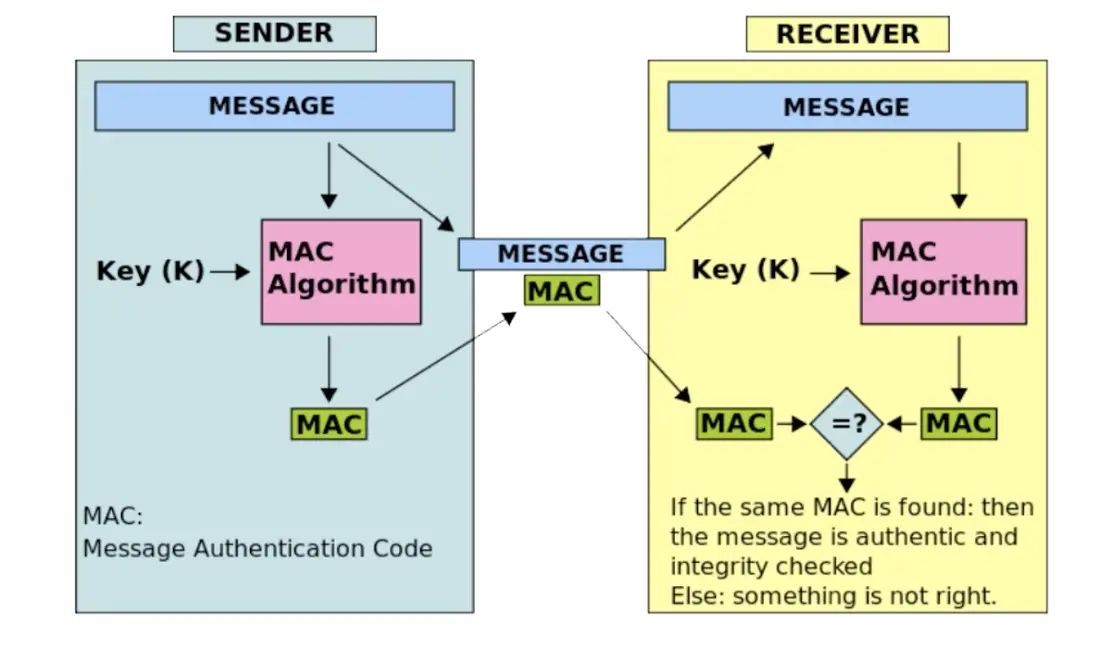MAC算法能够实现消息的完整性校验。工作原理是基于hash函数的。