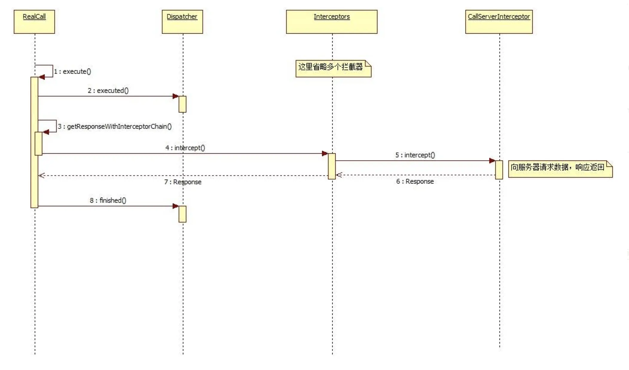 - 而call的实现类是RealCall,所以实际执行的是realCall.execute(),