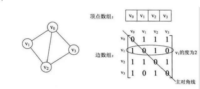 设图G有n个顶点,则邻接矩阵是一个nxn的方阵,定义为: