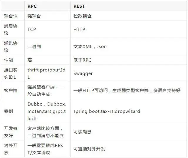 关于通讯方式,一般市面也就是两种远程调用方式,我整理了一个表格: