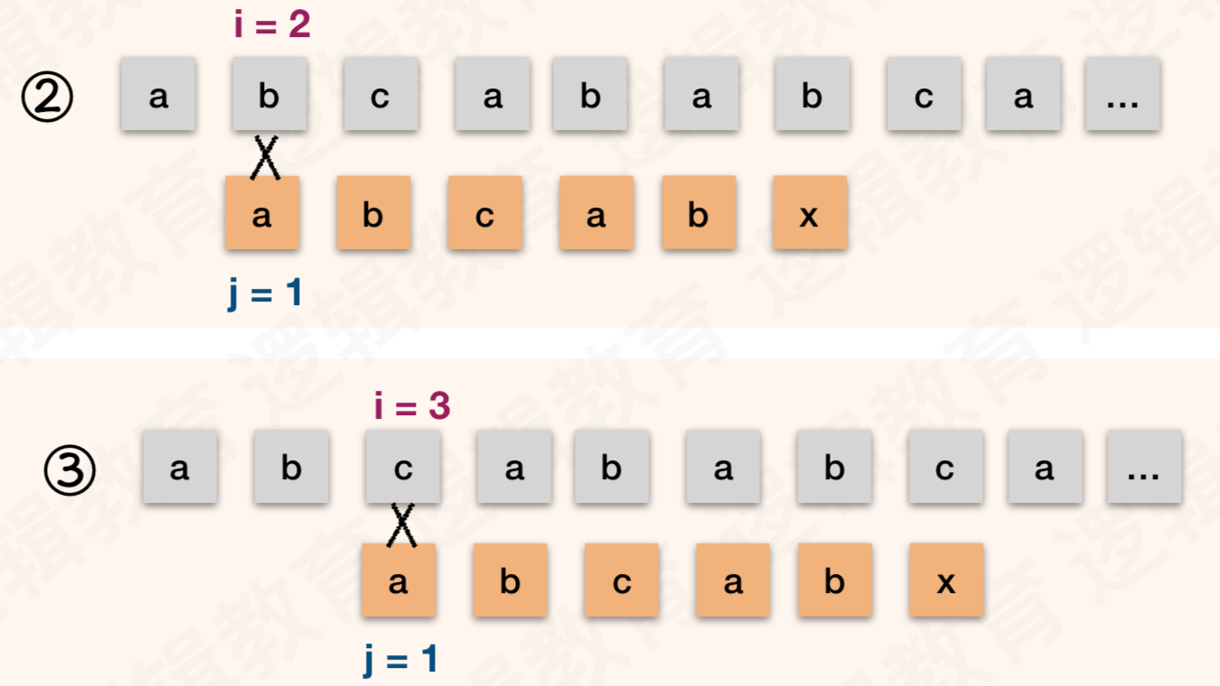 - 表示,当j=2时,发现字符不匹配.需要把控制模式串比较的下标索引回溯到1. 从第一个字符重新开始比较;