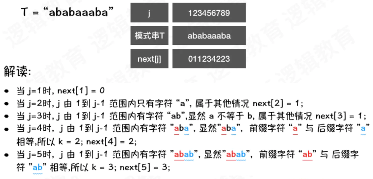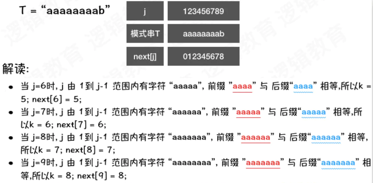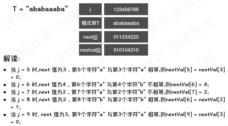 - 4、T[i] == T[j] 且++i,++j 后 T[i] != T[j] ,则nextVal = j;