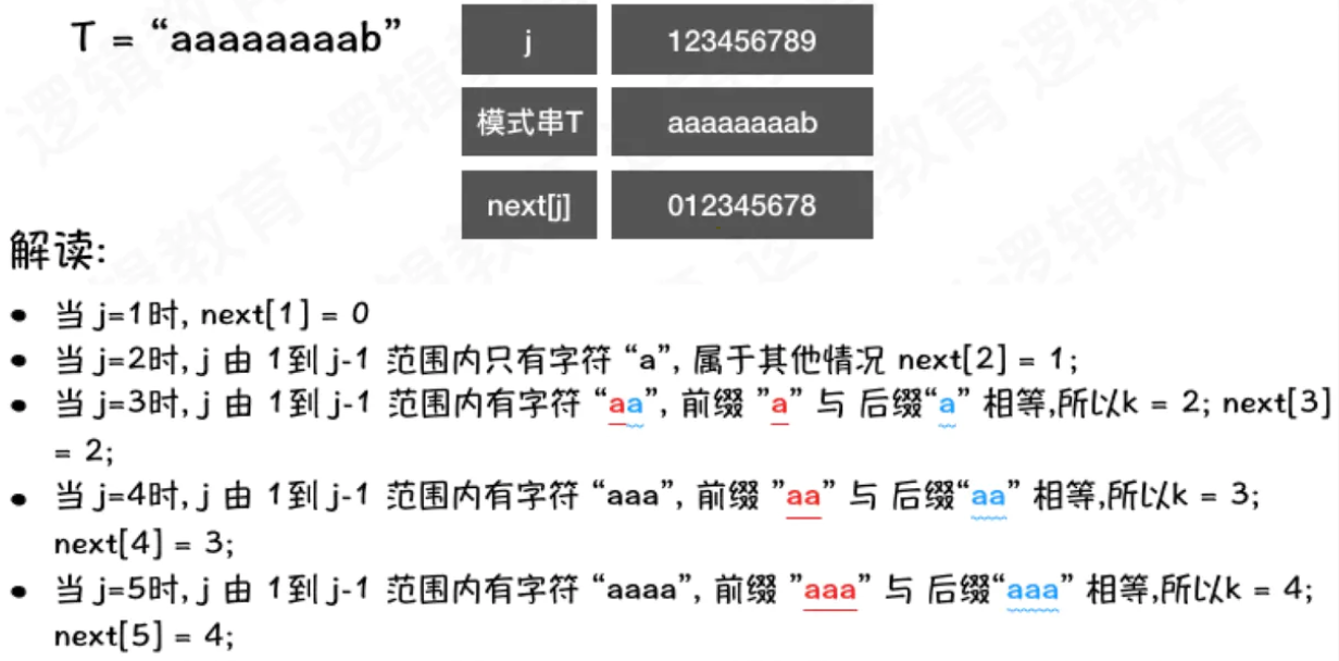 - 所以将i回退到next[1]. 也就是 i = next[i];
