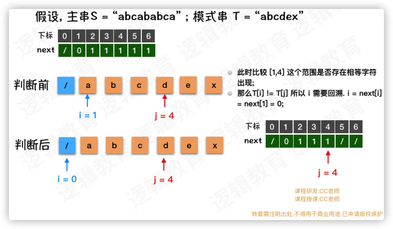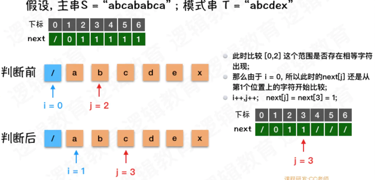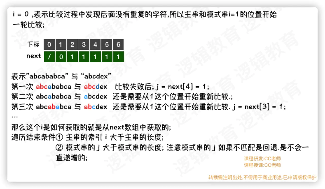 - 此时 i = 0,也就意味着.当j = 4时, 是需要从头开始比较;