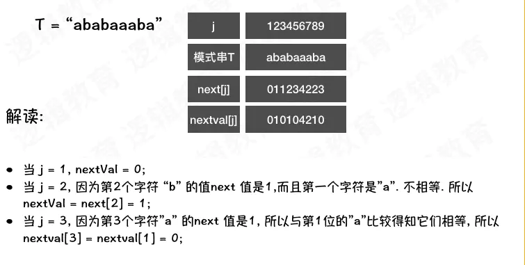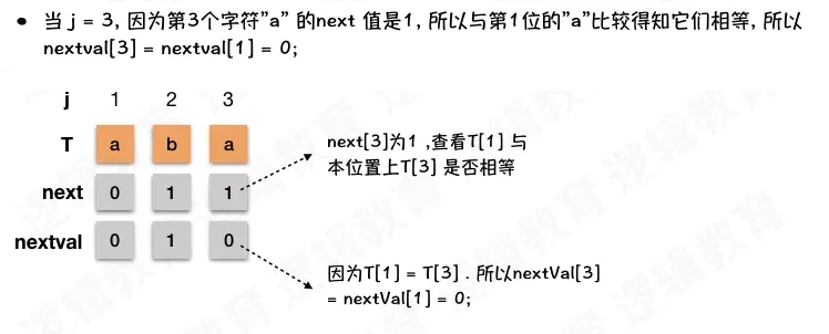 - 2、T[i] == T[j] 且++i,++j 后 T[i] 依旧等于 T[j] 则 nextval[i] = nextval[j]