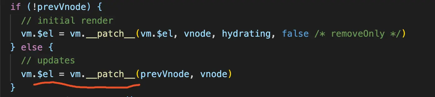 vm.$el = vm.__patch__(vm.$el, vnode, hydrating, false /* removeOnly */)