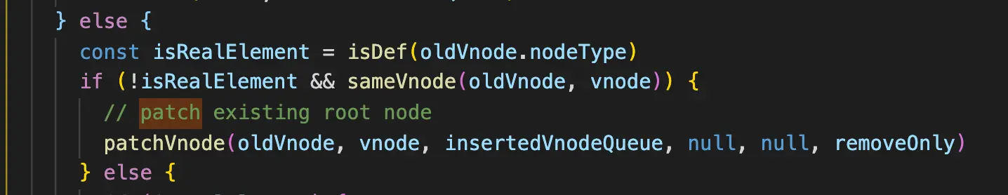 if (!isRealElement && sameVnode(oldVnode, vnode)) {