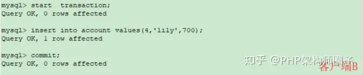 ②在客户端A的事务提交之前,打开另一个客户端B,更新表account并提交