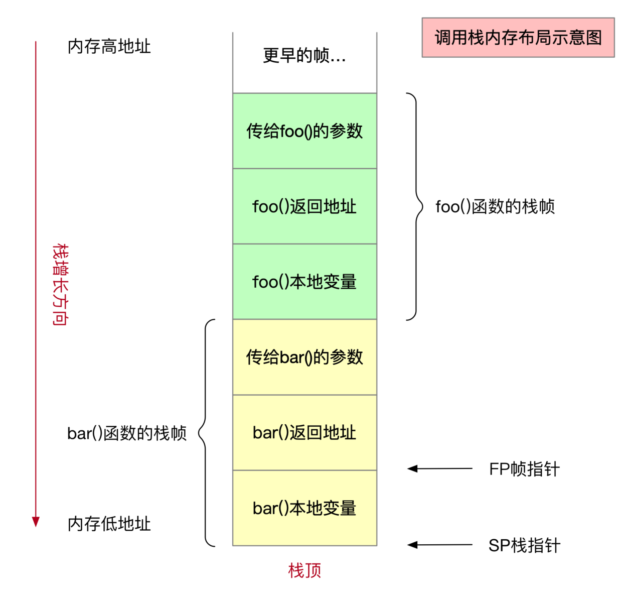 其中,比较重要的是栈指针(stack pointer,下面简称sp)与帧指针(frame pointer,下面简称fp)。