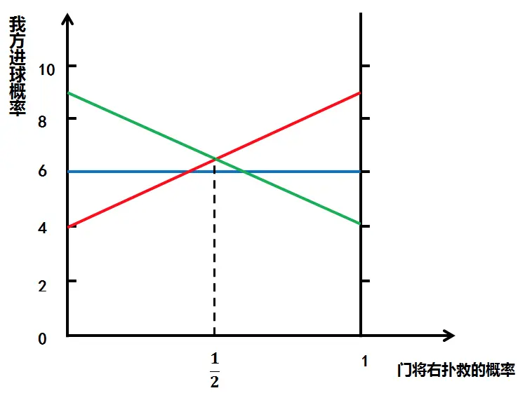 红线表示的是当我方选择向左射门时的预期收益。