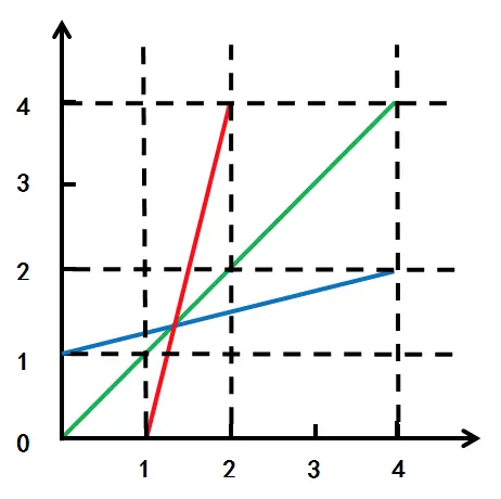 此时红线和蓝线就像剪刀一样张开,交点越来越靠近。