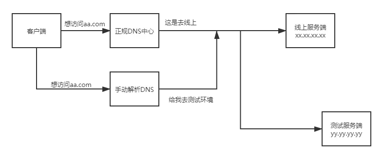 知道了上面那些概念以后,有一个想法油然而生,那我是不是可以通过修改解析方式来区分测试环境和正式环境呢?如果可以的话,我们项目里就让它一直是www.release.com好了,在我需要测试的时候,我把这个域名解析到测试机器上,这样不就访问到了测试环境了么?
