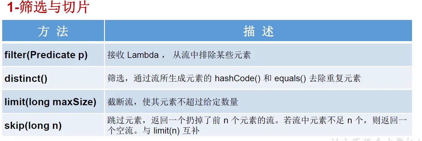 //skip(n)跳过元素,返回一个扔掉前n个元素的流,若流中元素不足n个,则返回一个空流,与limit(n)互补