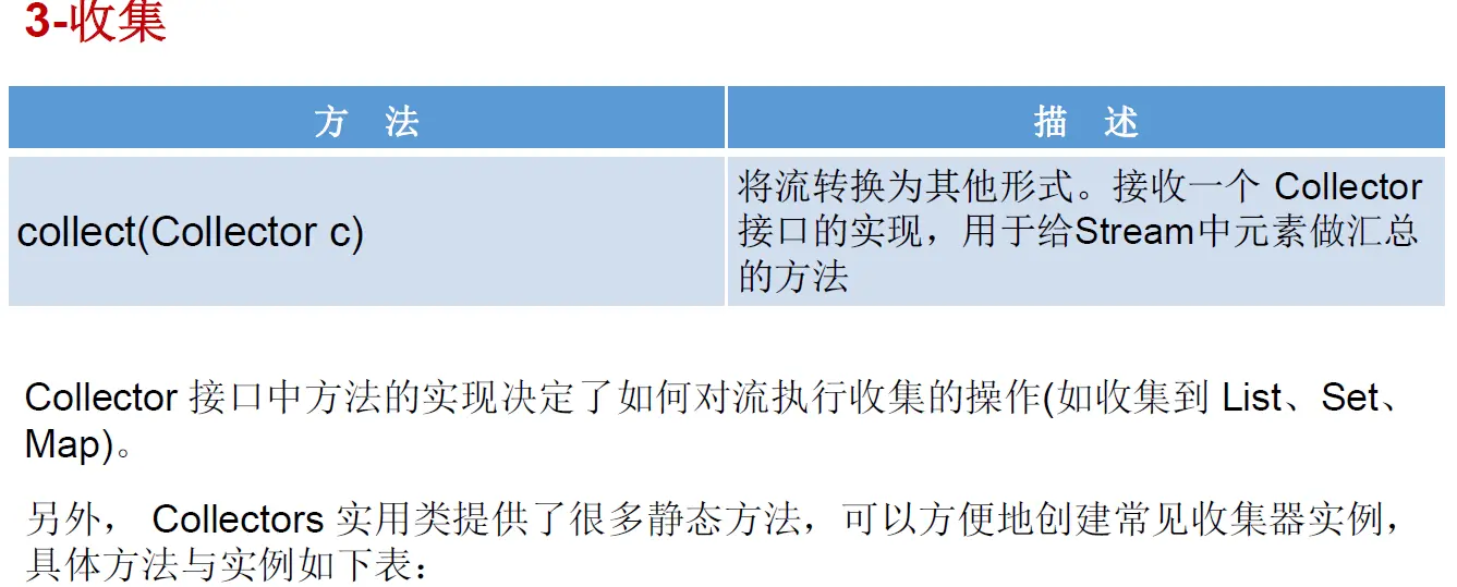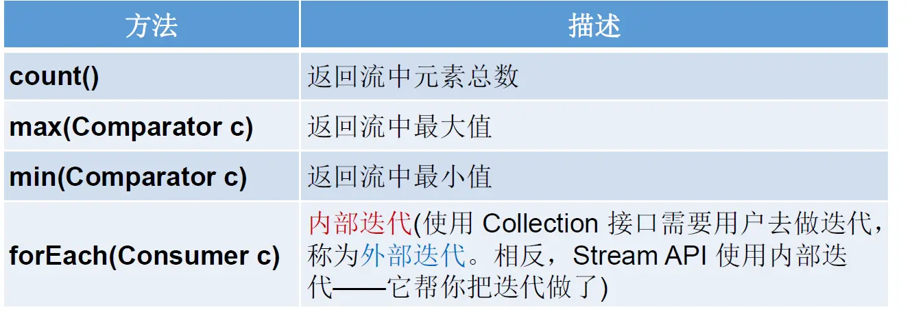 实际开发中,项目中多数数据源都来自于 Mysql Oracle 等。但现在数据源可以更多了,有 MongDB Radis 等,而这些 NoSQL 的数据就 需要Java 层面去处理。 另外 Stream的使用需要创建,中间操作,终止操作三个步骤联合使用,缺一不可。