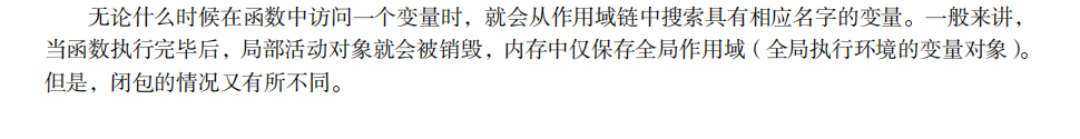 内部函数在搜索这两个变量时,只会搜索到其活动对象为止,因此永远不可能直接访问外部函数中的这两个变量。