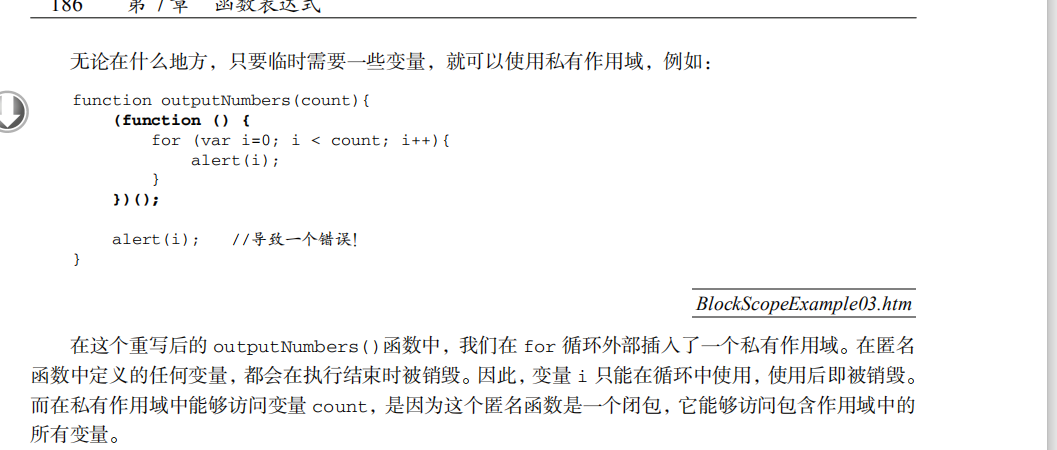 3、关于临时创建一些需要的变量,就可以使用私有作用域。(很重要!)