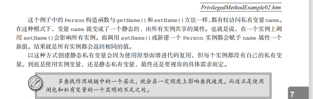 以这种方式创建私有变量会因为使用原型而增进代码复用,但每个实例都没有自己的私有变量。