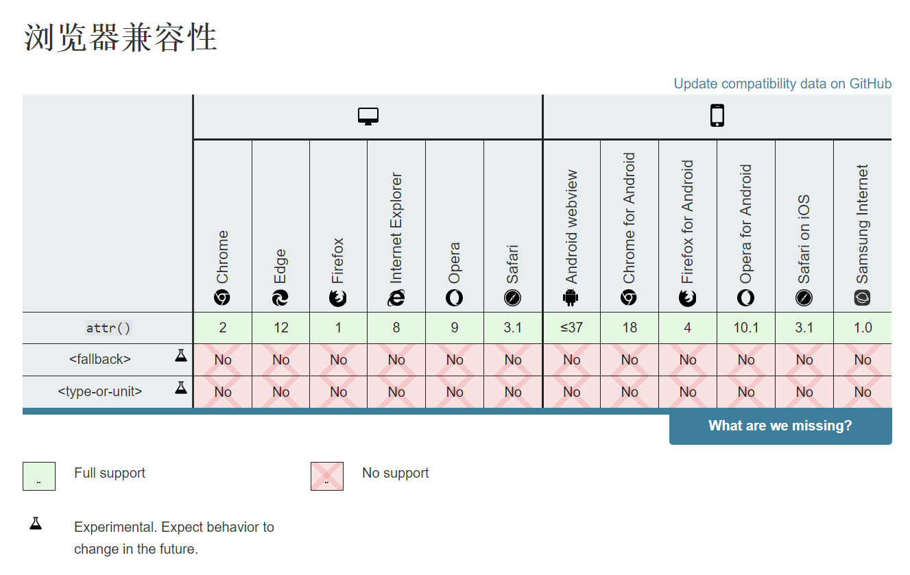 css属性:content:attr() 呵阿咯咯 2020-05-06 1,481 阅读1分钟 attr() 理论上能用于所有的CSS属性但目前支持的仅有伪元素的 content 属性 CSS表达式 attr() 用来获取选择到的元素的某一HTML属性值,并用于其样式。它也可以用于伪元素,属性值采用伪元素所依附的元素。 attr() 表达式可以用于任何CSS属性 p:before { content:attr(data-foo) " "; } <p data-foo="hello">world</p>