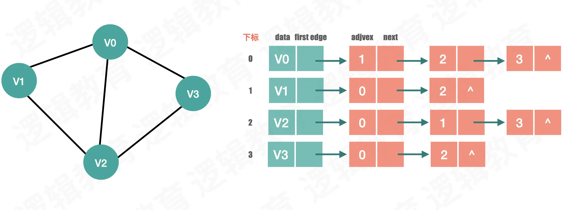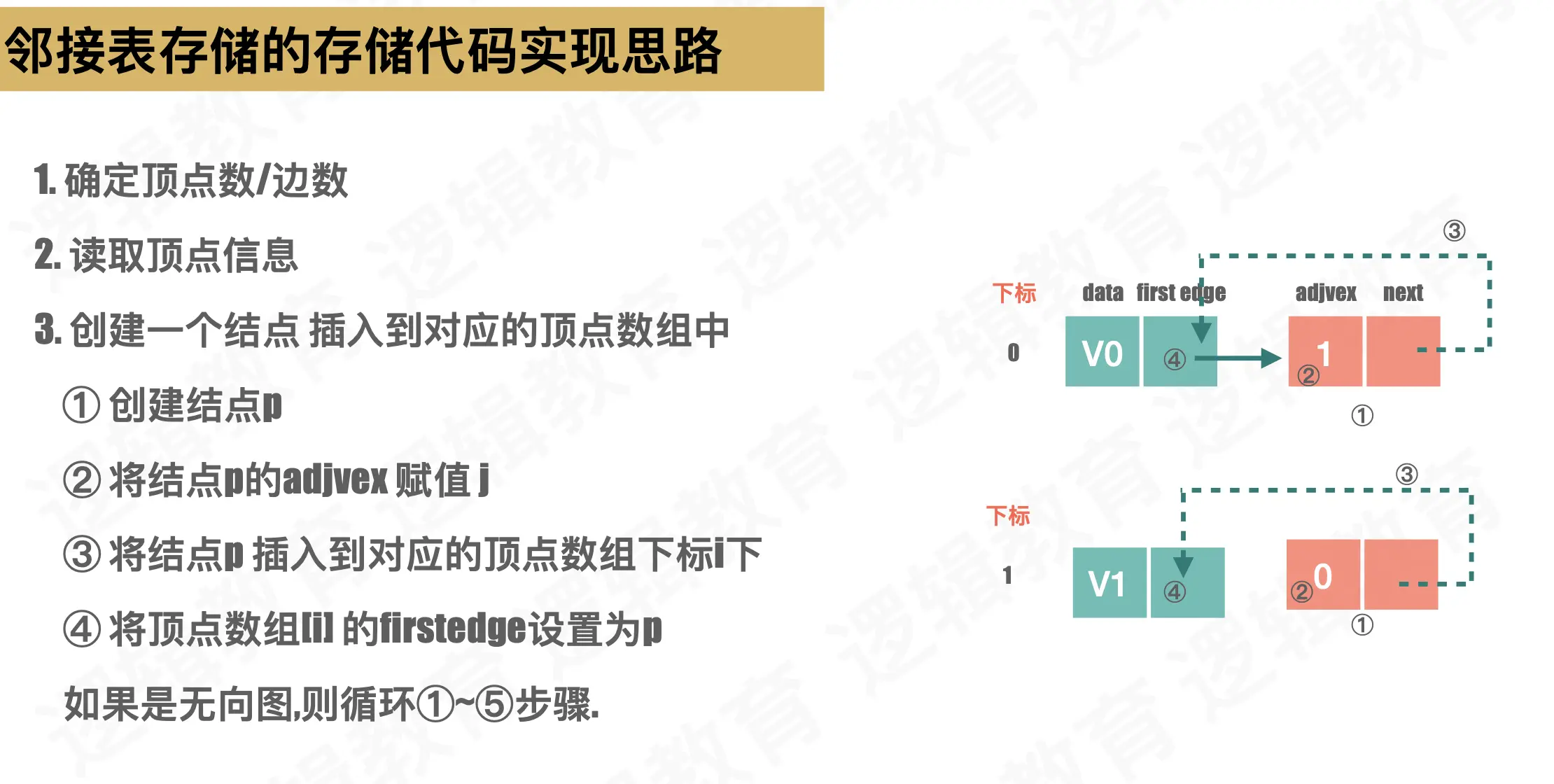 //③头插法插进去,插的时候要找到弧尾,那就是顶点数组的下标i