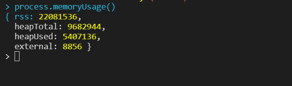 `Process:总共申请的内存heapTotal:${format(mem.heapTotal)}, 目前堆中使用内存heapUsed:${format(