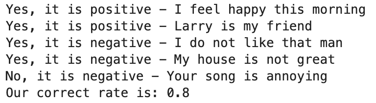 我们的分类器效果如何呢?先用我们事先准备好的测试集检验一下。可以得到 0.8 的正确率。