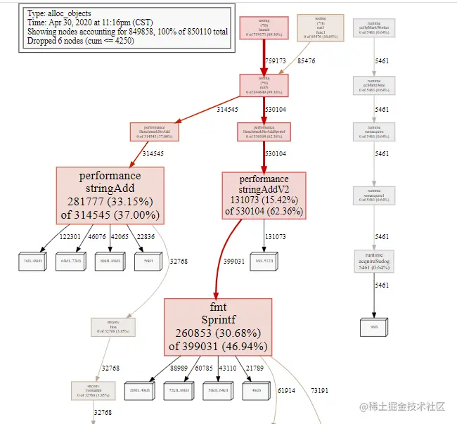 0 0% 99.88% 11750.92MB 42.57% github.com/oyjjpp/blog/action/performance.BenchmarkStrAdd