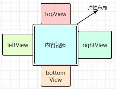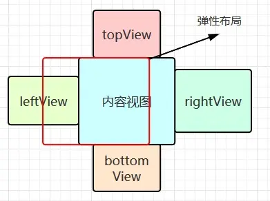 为了通用性,这里采用 topView、bottomView、leftView 和 rightView 等布局外视图,放在布局边界的上下左右四个方向,通过滚动整个视图的方式来露出对应的视图。