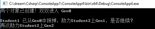 Console.WriteLine("Student1 已从Gen0中抹掉,助力Student2上Gen1,是否继续?");