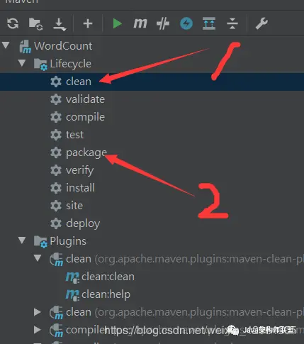 package com.msb;import org.apache.hadoop.conf.Configuration;import org.apache.hadoop.fs.Path;import org.apache.hadoop.io.IntWritable;import org.apache.hadoop.io.Text;import org.apache.hadoop.mapreduce.Job;import org.apache.hadoop.mapreduce.lib.input.FileInputFormat;import org.apache.hadoop.mapreduce.lib.output.FileOutputFormat;public class WcMainYarn { public static void main(String[] args) throws Exception { // 1 获取配置信息,或者job对象实例 Configuration configuration = new Configuration(); /*本地提交集群运行 * */ configuration.set("yarn.resourcemanager.address", "192.168.152.123:8050"); configuration.set("mapreduce.framework.name", "yarn"); configuration.set("mapreduce.app-submission.cross-platform", "true"); configuration.set("fs.defaultFS", "hdfs://node01:9000"); Job job = Job.getInstance(configuration); // 6 指定本程序的jar包所在的本地路径 job.setJar("/test/hadoop/WordCount-1.0-SNAPSHOT.jar"); //job.setJar("E:\\Java\\WordCount\\target\\WordCount-1.0-SNAPSHOT.jar"); job.setJarByClass(WcMainYarn.class); // 2 指定本业务job要使用的mapper/Reducer业务类 job.setMapperClass(WcMapper.class); job.setReducerClass(WcReduce.class); // 3 指定mapper输出数据的kv类型 job.setMapOutputKeyClass(Text.class); job.setMapOutputValueClass(IntWritable.class); // 4 指定最终输出的数据的kv类型 job.setOutputKeyClass(Text.class); job.setOutputValueClass(IntWritable.class); // 5 指定job的输入原始文件所在目录 FileInputFormat.setInputPaths(job, new Path( "hdfs://node01:9000/input/text")); FileOutputFormat.setOutputPath(job, new Path("hdfs://node01:9000/output")); // 7 将job中配置的相关参数,以及job所用的java类所在的jar包, 提交给yarn去运行 job.submit(); boolean result = job.waitForCompletion(true); System.exit(result?0:1); }}4、将代码打包提交到集群中运行