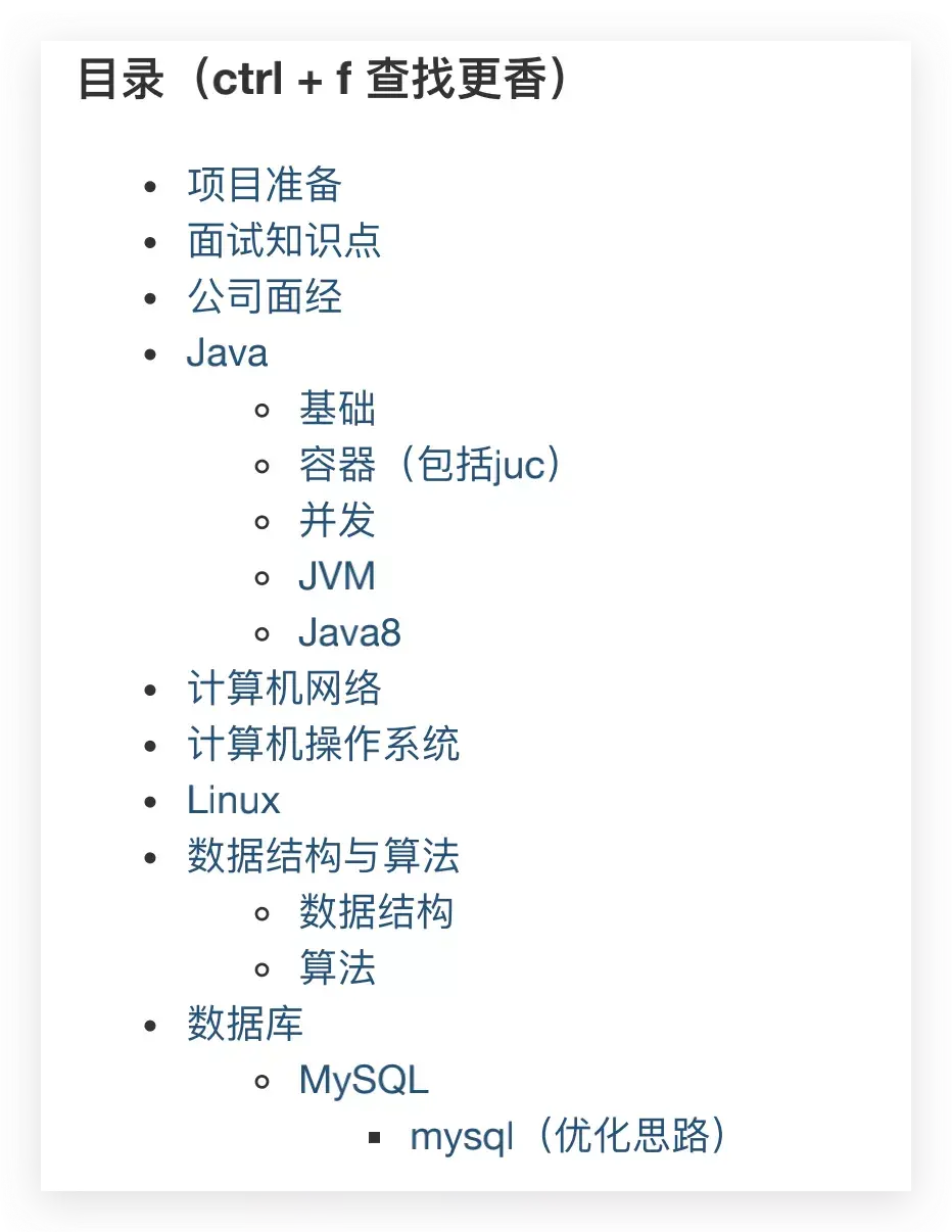 此手册内容专注 Java面试 ,这是本人花费了 3 个月的时间总结的【Java 面试 + Java 后端技术学习指南】,目前本人已经拿到了腾讯等大厂offer,只要大家把这上面的知识点都搞明白,进入前 50 的互联网公司是绝对没有问题的,希望对大家的面试有一定的帮助。