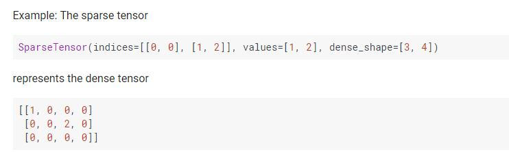 4.SparseTensor(稀疏张量)是一种稀疏的Tensor,类似线代中稀疏矩阵。定义时只需要定义非0的数,其他的数会自动填充。