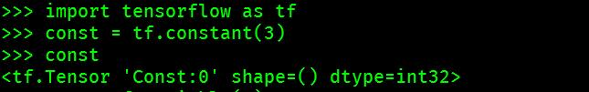 tf.Tensor就是名字,’Const’是名字。0是索引,表示张量是这个计算中产生的第几个。shape=()是形状,这个是标量所以是空,dtype为数据类型。