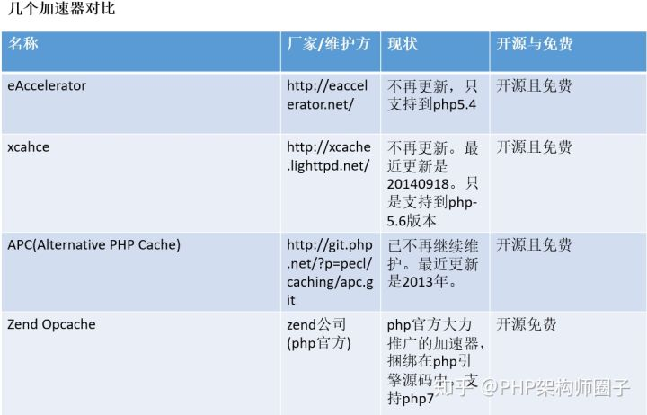 PHP 5.5+版本以上的,可以使用PHP自带的opcache开启性能加速(默认是关闭的),PHP5.5之后opcache可以直接--enable-opcache。对于PHP 5.5以下版本的,可以使用APC来进行缓存。