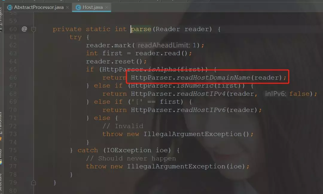 到这里我们也就知道了处理Host头部的类就是这个HttpParser类。