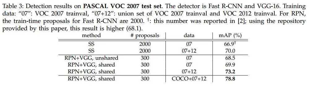 RPN Training两种训练方式: joint training和alternating training 两种训练的方式都是在预先训练好的model上进行fine-tunning,比如使用VGG16、ZF等,对于新加的layer初始化使用random initiation,使用SGD和BP在caffe上进行训练 alternating training首先训练RPN, 之后使用RPN产生的proposal来训练Fast-RCNN, 使用被Fast-RCNN tuned的网络初始化RPN,如此交替进行 joint training首先产生region proposal,之后直接使用产生的proposal训练Faster-RCNN,对于BP过程,共享的层需要combine RPN loss和Faster-RCNN loss Result结果自然不用说,肯定是state-of-art,大家自己感受下吧