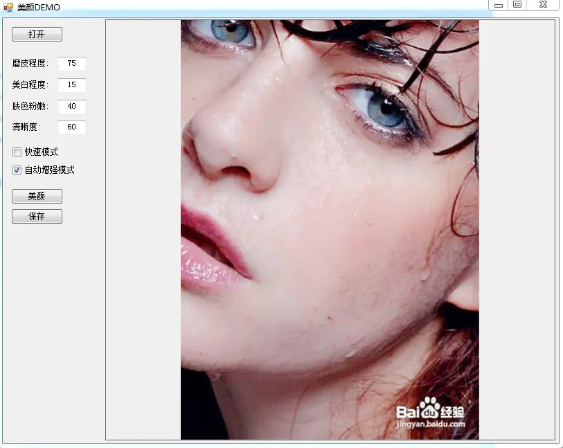 本人DEMO效果大家可以自行对比美颜相机等APP,在自动增强模式下,与美颜相机实时美颜效果较为接近!
