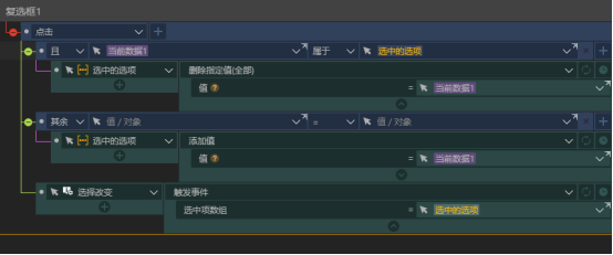 而小模块内部自然就是在选择选项的时触发这个自定义事件。单项选择器中我们将选择结果赋值给文本变量,然后将文本变量的值传给事件参数并触发自定义事件;多项选择器则先进行一个判断,在一维数组中添加或删除该选项,最后将数组作传给事件参数并触发事件。(这也就是前文中提到的本案例使用的方法)