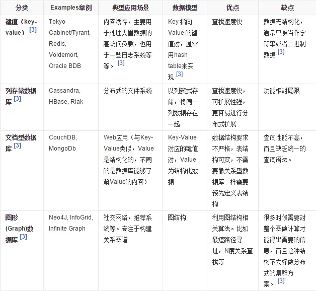 - 键 - 值对存储,列存储,文档存储,图形数据库