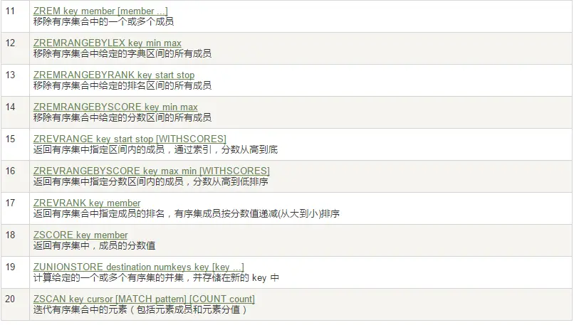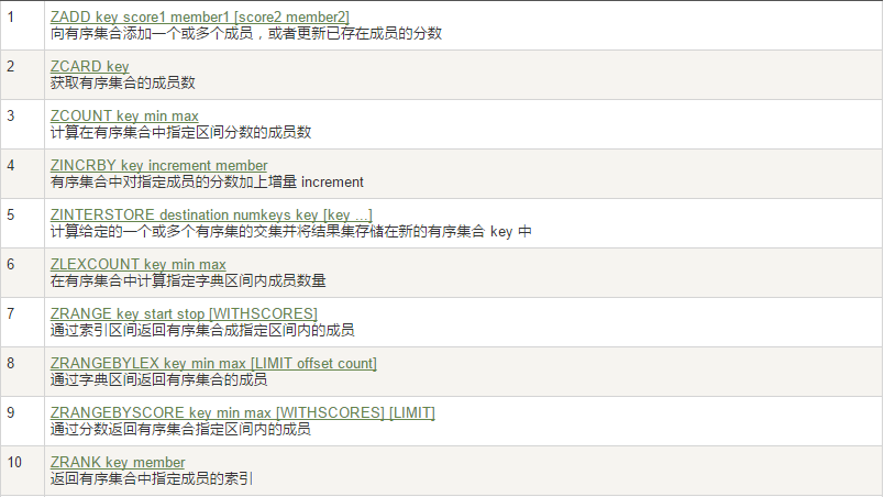 zset(sorted set:有序集合) Redis zset 和 set 一样也是string类型元素的集合,且不允许重复的成员。 不同的是每个元素都会关联一个double类型的分数。 redis正是通过分数来为集合中的成员进行从小到大的排序。zset的成员是唯一的,但分数(score)却可以重复。