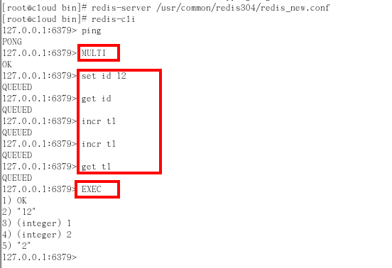 入队:将多个命令入队到事务中,接到这些命令并不会立即执行,而是放到等待执行的事务队列里面