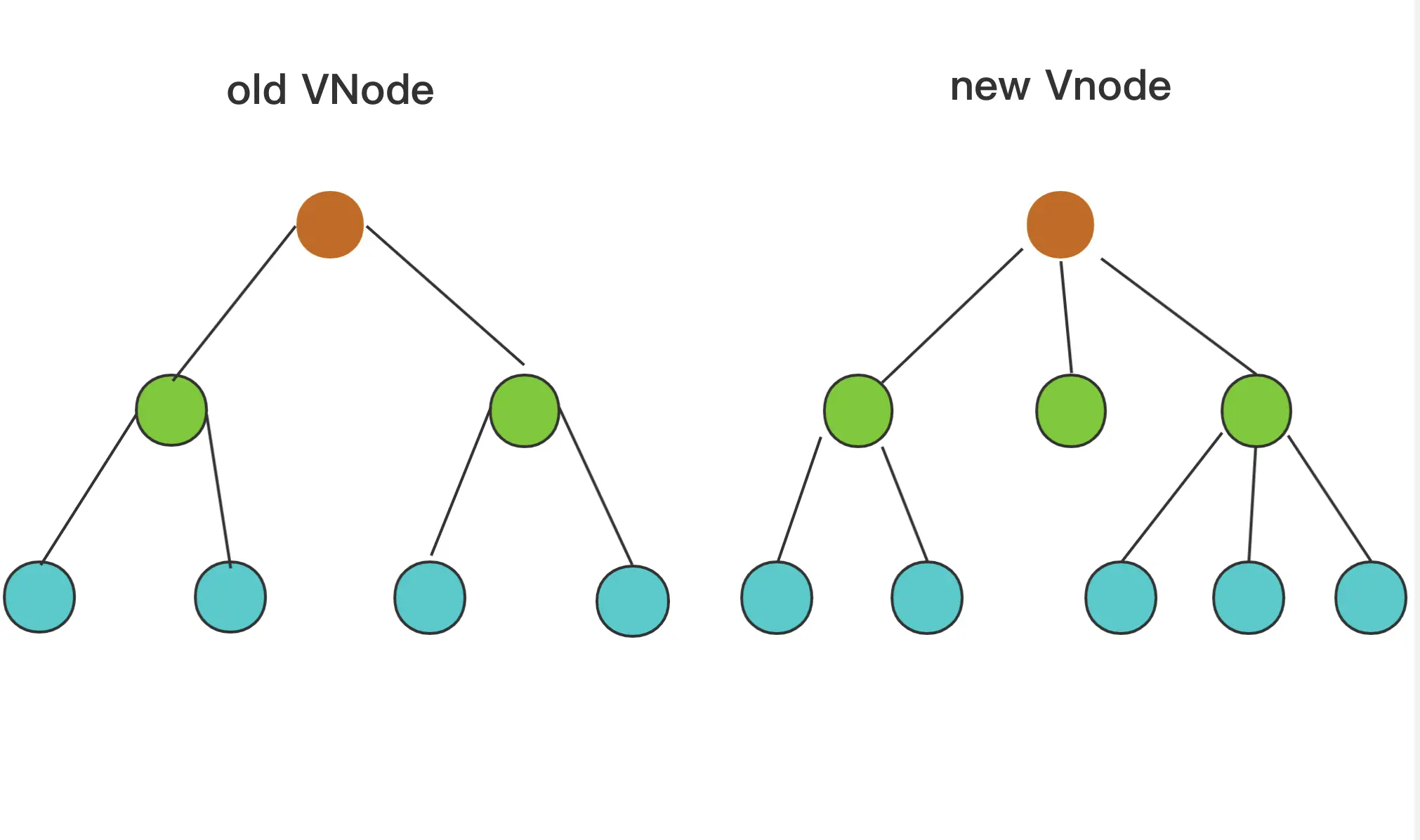 而 diff 算法又是patch 的核心内容,我们用 diff 算法可以比对出两颗树的「差异」,假设我们现在有如下两颗树,它们分别是新老 VNode 节点,这时候到了 patch 的过程,我们需要将他们进行比对: