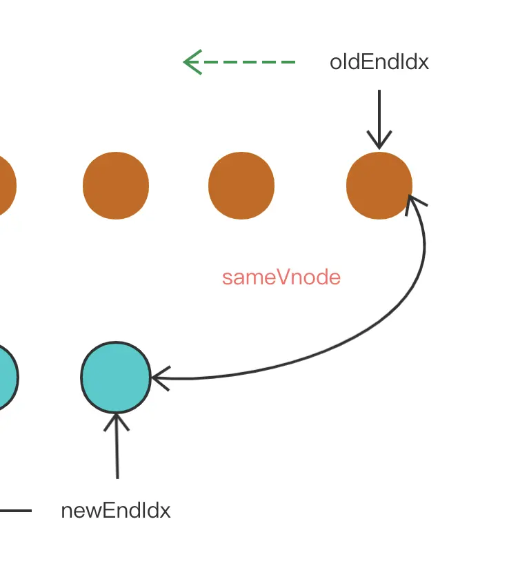 // oldEndVnode 与 newStartVnode 符合 sameVnode 时,