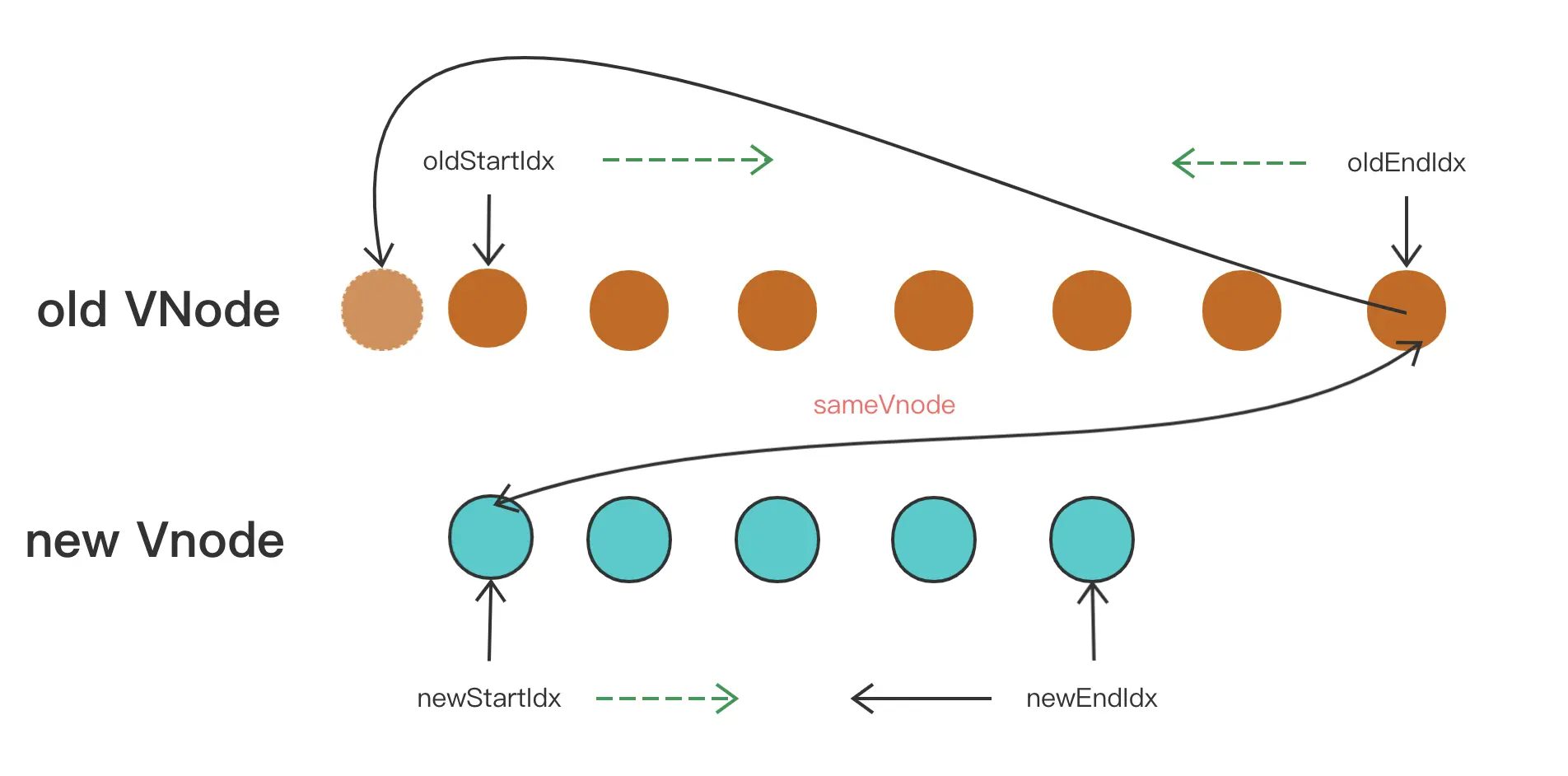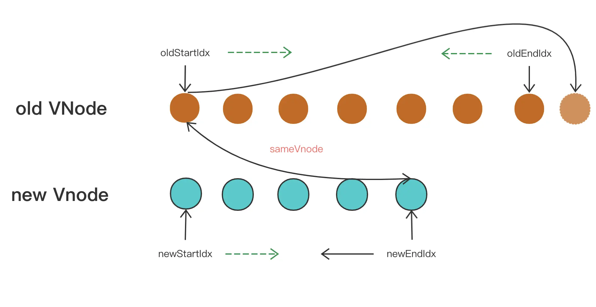 // 也就是老 VNode 节点的尾部与新 VNode 节点的头部是同一节点的时候,
