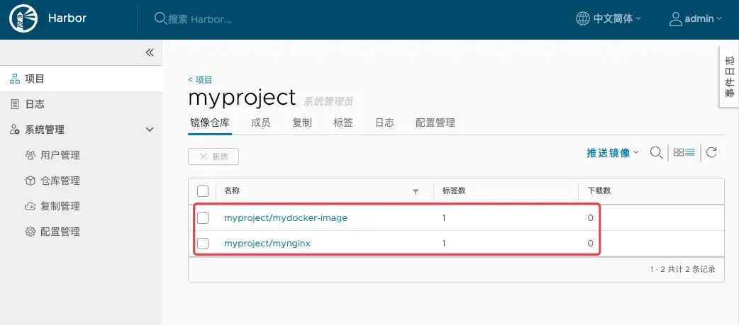 首先在harbor上创建一个项目myproject(我这里不使用默认的libary)