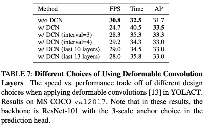 可变形卷积由于其卷积的可变形性,对目标定位相关的任务均有提升,因此,YOLACT++将主干网络到