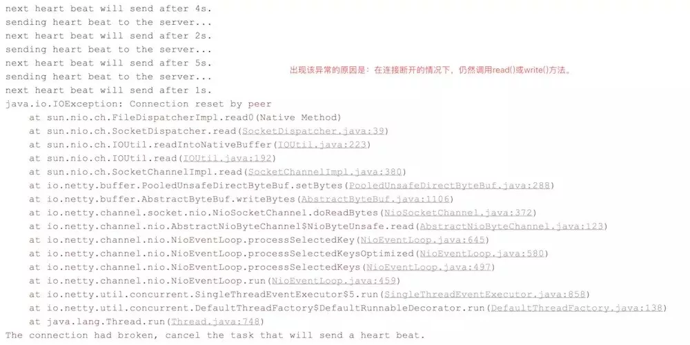 System.err.println("The connection had broken, cancel the task that will send a heart beat.");