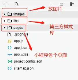 pages目录是这个小程序的总目录,images和libs可以按照个人喜好放文件。