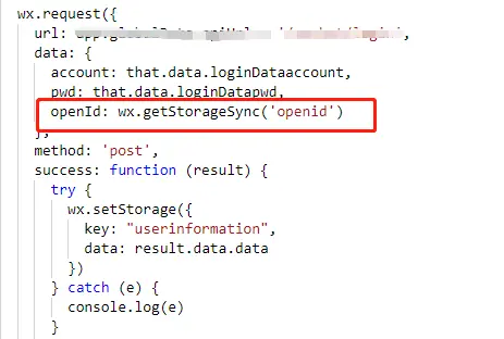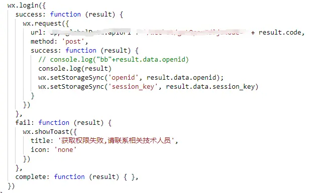 首先,在请求我们的登录接口之前,我们需要通过wx.login()获取code,通过wx.request()请求后台接口将code传给后台,后台拿到code去请求微信官方的接口拿到openid和session_key返给前端,用作判断设备的唯一标识,然后我们拿到openid就可以带着账号密码登录了(不知道说的大家能不能懂,哈哈!!!其实大部分都在后台)。