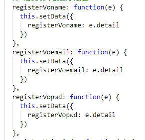 需要注意的是,因为微信小程序是单项数据绑定的,当我们拿到input框的数据后,每次都需要setData()一下,不然没法给data{}中的数据赋值,这一方面感觉有点拉啊,像用惯了vue的v-model,简直是致命的打击。